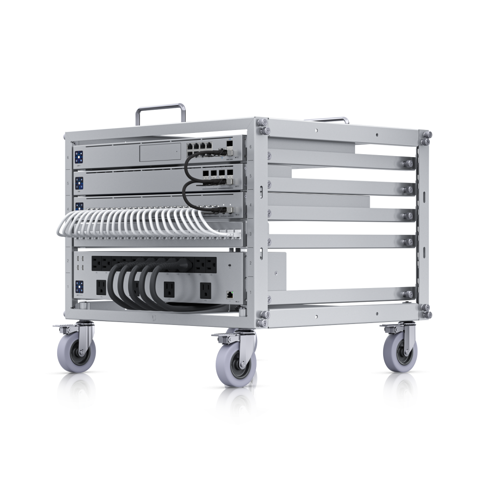 Мини-стойка без инструментов (U Rack 6U TL) представляет собой прочную стойку для устройств размером 6U, которую можно легко собрать без инструментов. U Rack 6U TL оснащен 24-портовой глухой патч-панелью, запираемыми роликами и может вмещать большинство устройств Ubiquiti, устанавливаемых в стойку.